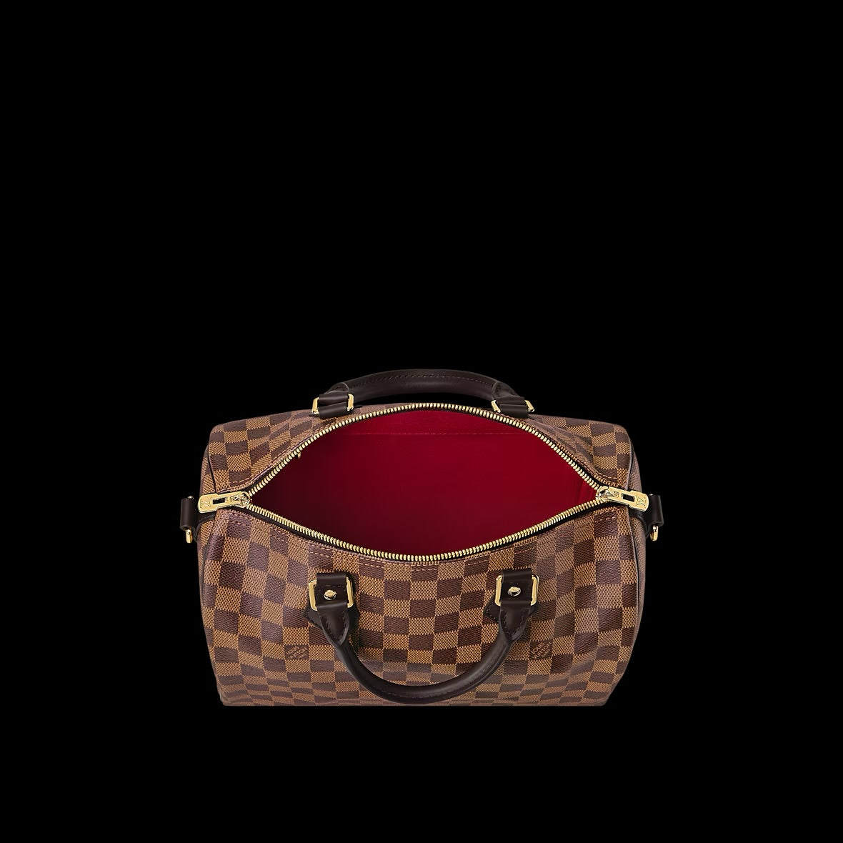 The Speedy Bandoulière 30 in elegant Damier Ebene canvas is an ideal city bag for every day. Originally created for travelers in the 1930s – the name refers to the era’s rapid transit – every feature of the Speedy’s design is iconic, from its unmistakable shape to the rolled leather handles, engraved padlock and detachable strap.
